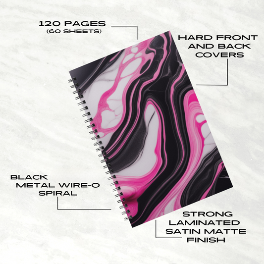 Pink Marble Rush 5.5”x8.5" Hardcover Notebook