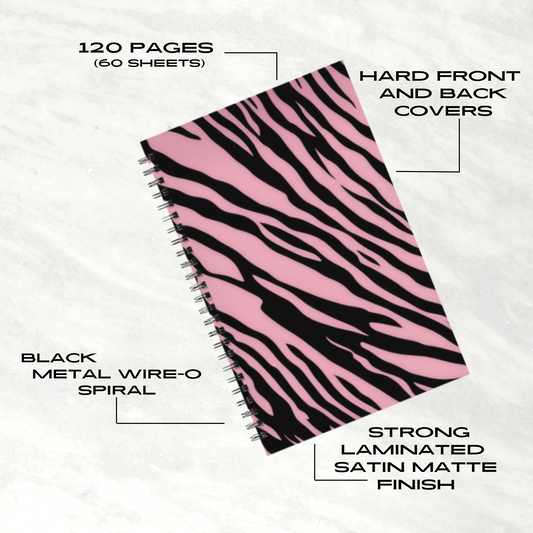 Pink Zebra Rush 5.5”x8.5" Hardcover Notebook