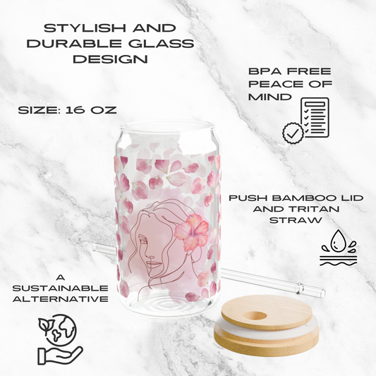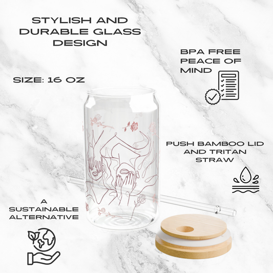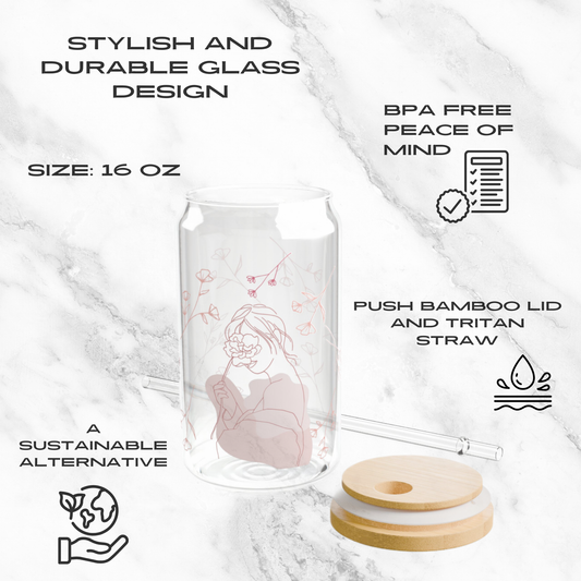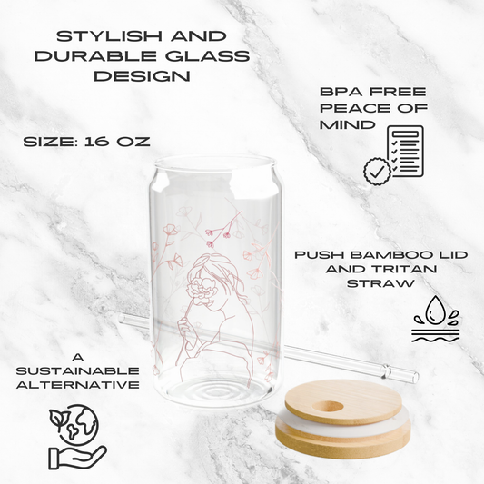 Floral Whispers 16oz Glass Tumbler | Soda Can
