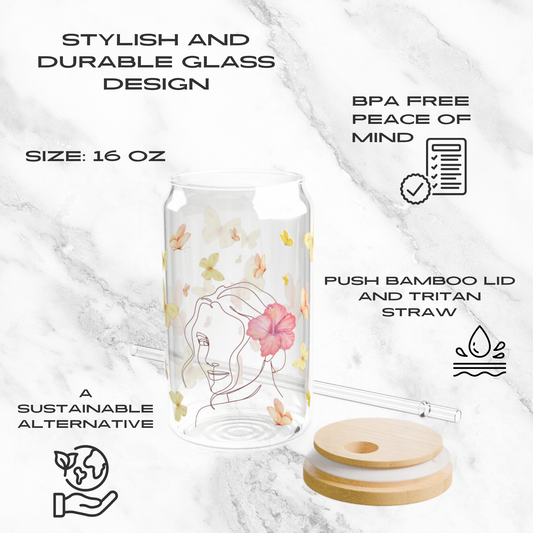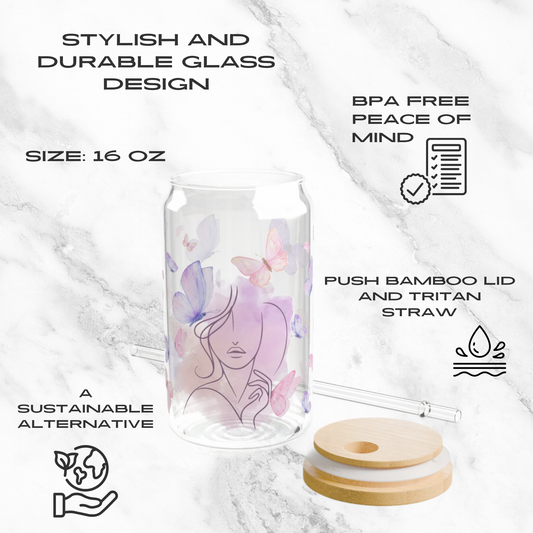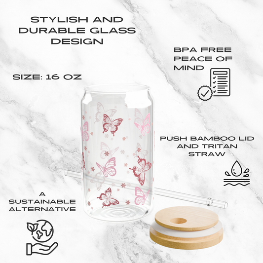 Butterfly Whimsy – 16oz Glass Tumbler | Soda Can