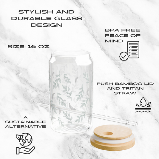 Eucalyptus Breeze 16oz Glass Tumbler | Soda Can