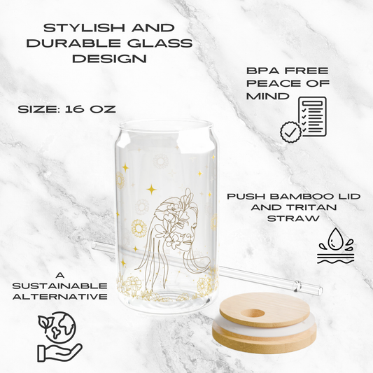 Golden Glimmer 16oz Glass Tumbler | Soda Can
