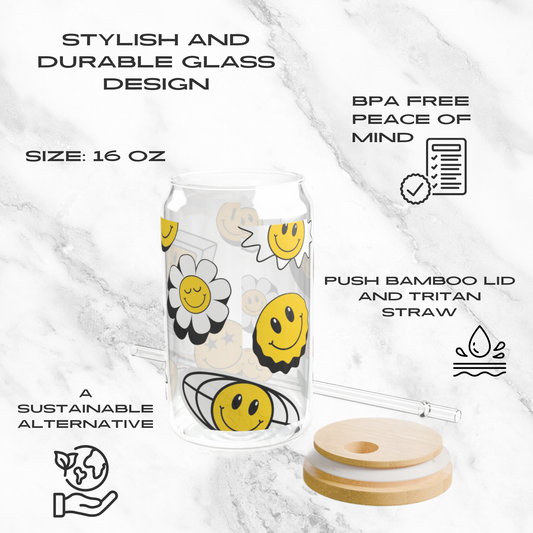 Smiley Daze 16oz Glass Tumbler | Soda Can